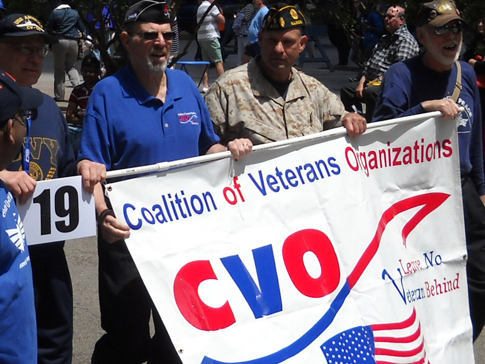 RSCN7860 Published June 4, 2014 at 1000 × 750 in Chicago Memorial Day Parade 2014 Photos Part I John Jacobsen, CVO Chair Bruce Parry, John Sullivan Ryan and Ray Parrish carry the CVO banner in Chicago’s 2014 Memorial Day Parade.